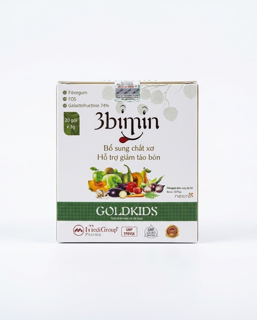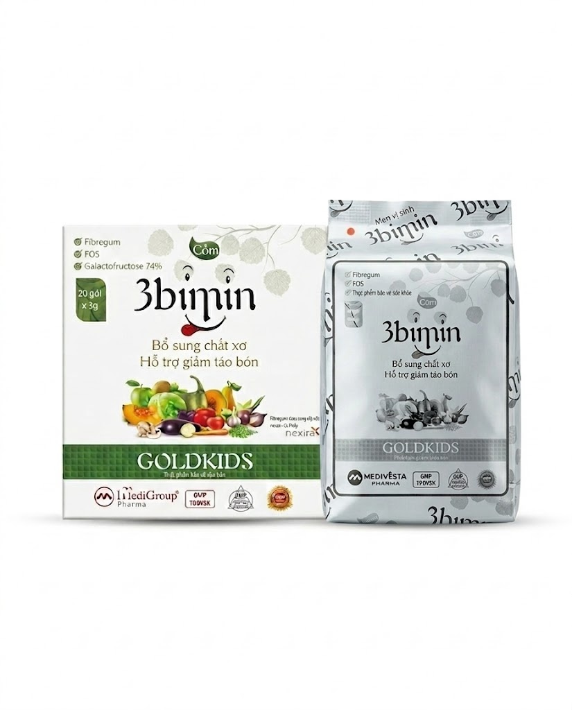 Táo bón ở trẻ em là nỗi ám ảnh của nhiều bậc phụ huynh, nguyên nhân lớn nhất đến từ chế độ ăn uống thiếu hụt rau xanh và trái cây. Để giải quyết triệt để vấn đề này một cách an toàn, thực phẩm bảo vệ sức khỏe Cốm 3bimin (GOLDKIDS) đã ra đời, mang đến giải pháp bổ sung nguồn chất xơ hòa tan cao cấp, giúp bảo vệ và nuôi dưỡng hệ tiêu hóa khỏe mạnh từ bên trong.