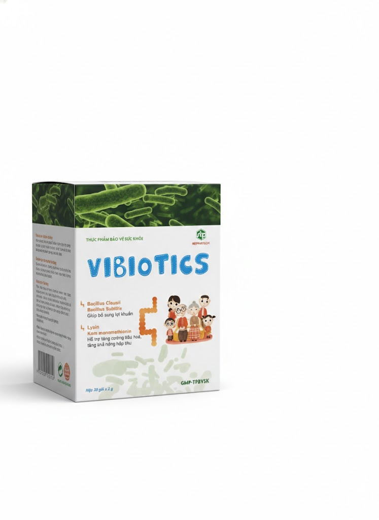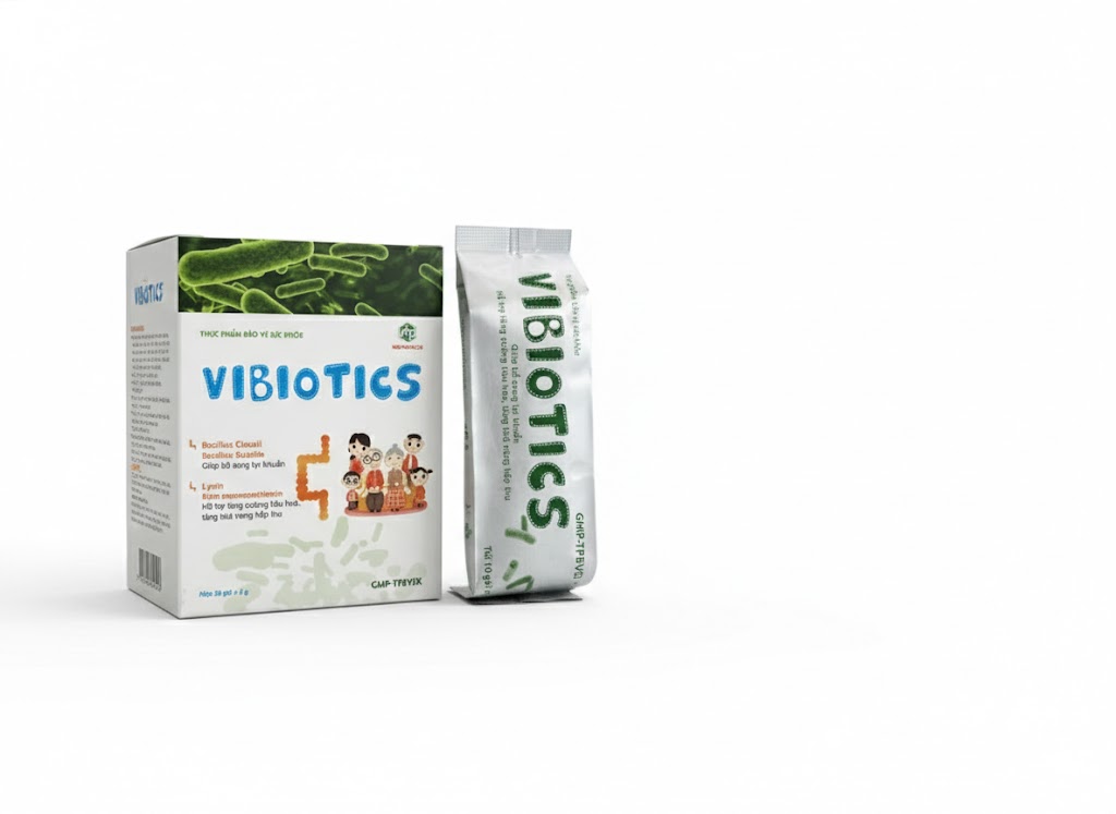 Thực phẩm bảo vệ sức khỏe Men vi sinh VIBIOTICS là giải pháp chuyên biệt được nghiên cứu nhằm bổ sung lượng lớn lợi khuẩn, ức chế các vi khuẩn có hại, từ đó lập lại cân bằng hệ vi sinh đường ruột và bảo vệ sức khỏe hệ tiêu hóa một cách toàn diện.